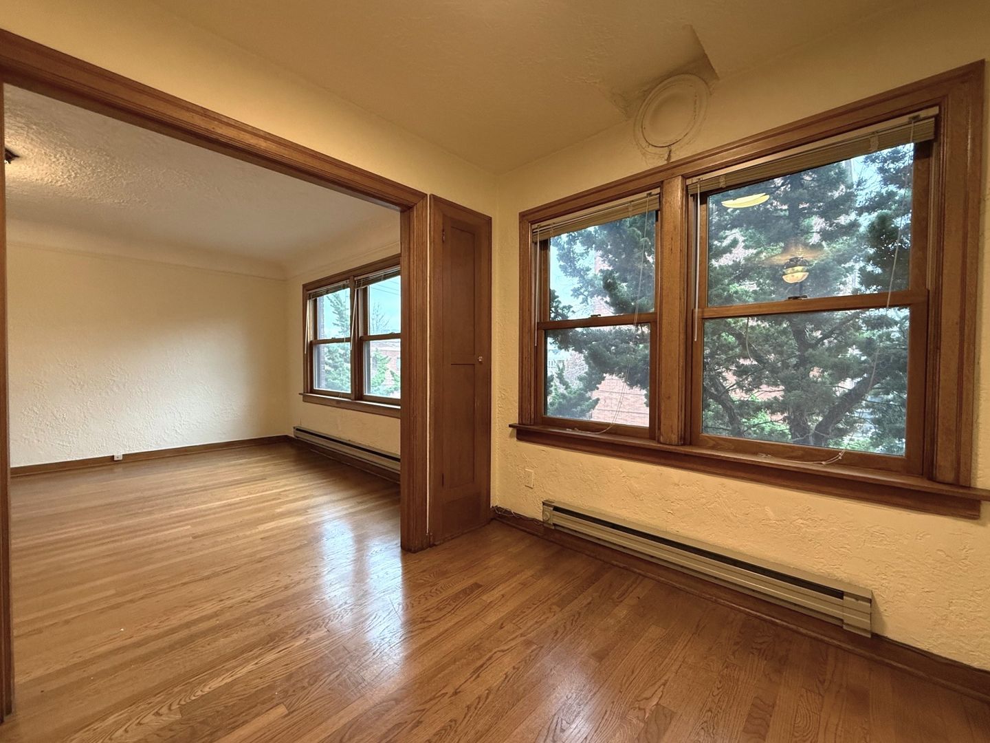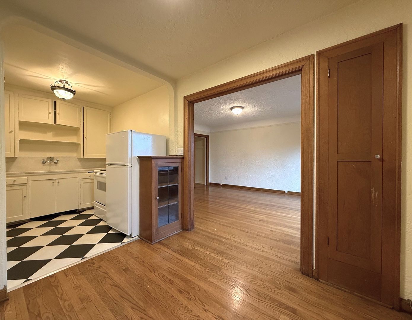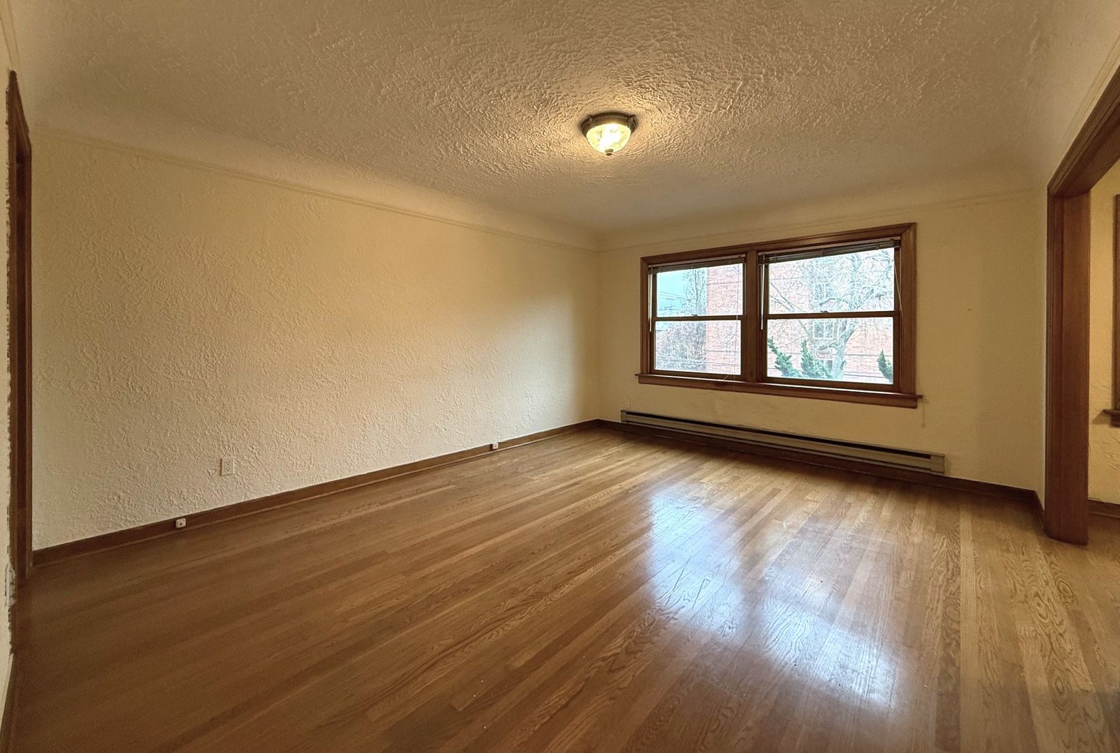 Unit 306 is situated on the South side of the building and receives great natural light. It has freshly refinished hardwood, vinyl in the kitchen, and original tile flooring in the bathroom. The kitchen has been updated as well as the bathroom. Enjoy a peek-a-boo view of the Space Needle from the living room window!