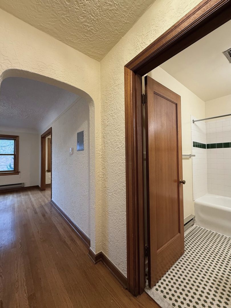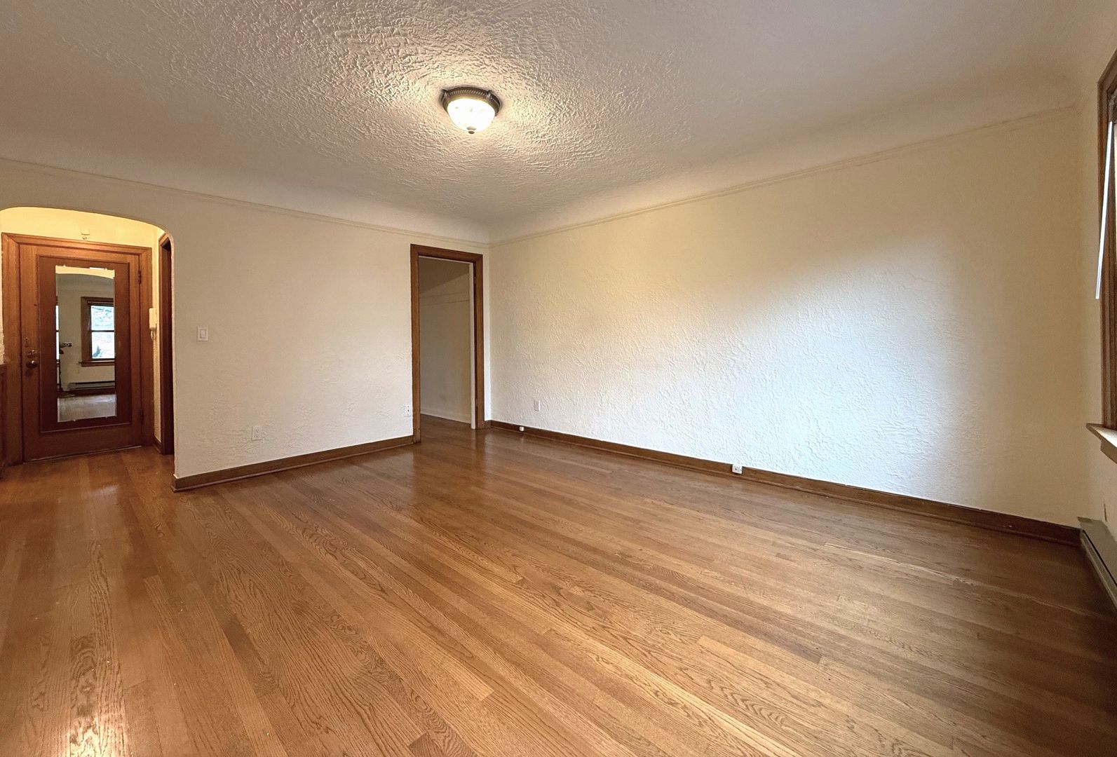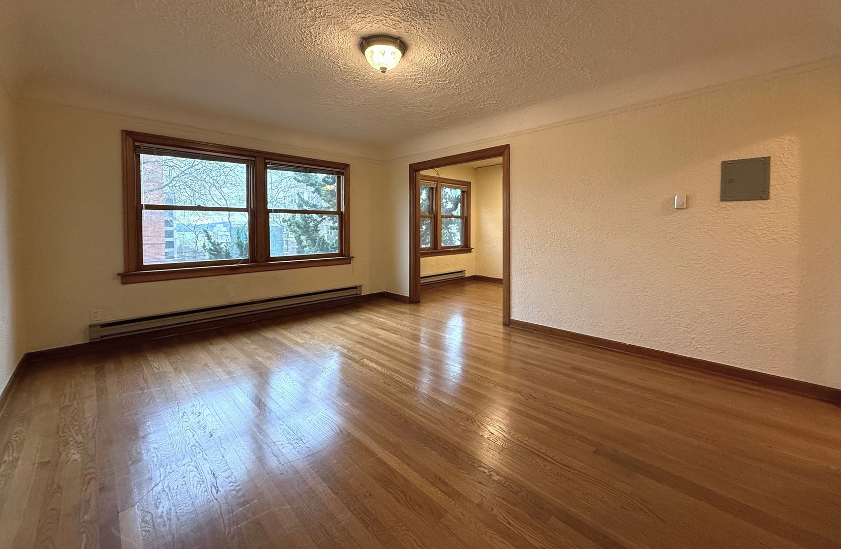 Unit 306 is situated on the South side of the building and receives great natural light. It has freshly refinished hardwood, vinyl in the kitchen, and original tile flooring in the bathroom. The kitchen has been updated as well as the bathroom. Enjoy a peek-a-boo view of the Space Needle from the living room window!