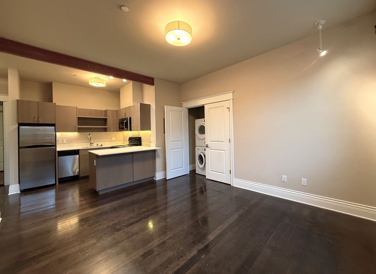 306 is a top floor 1bedroom situated on the Southeast corner of the building. It has beautiful natural hardwood flooring, designer cabinetry and lighting, stainless steel appliances, granite kitchen counter tops, and an in-unit washer/dryer.