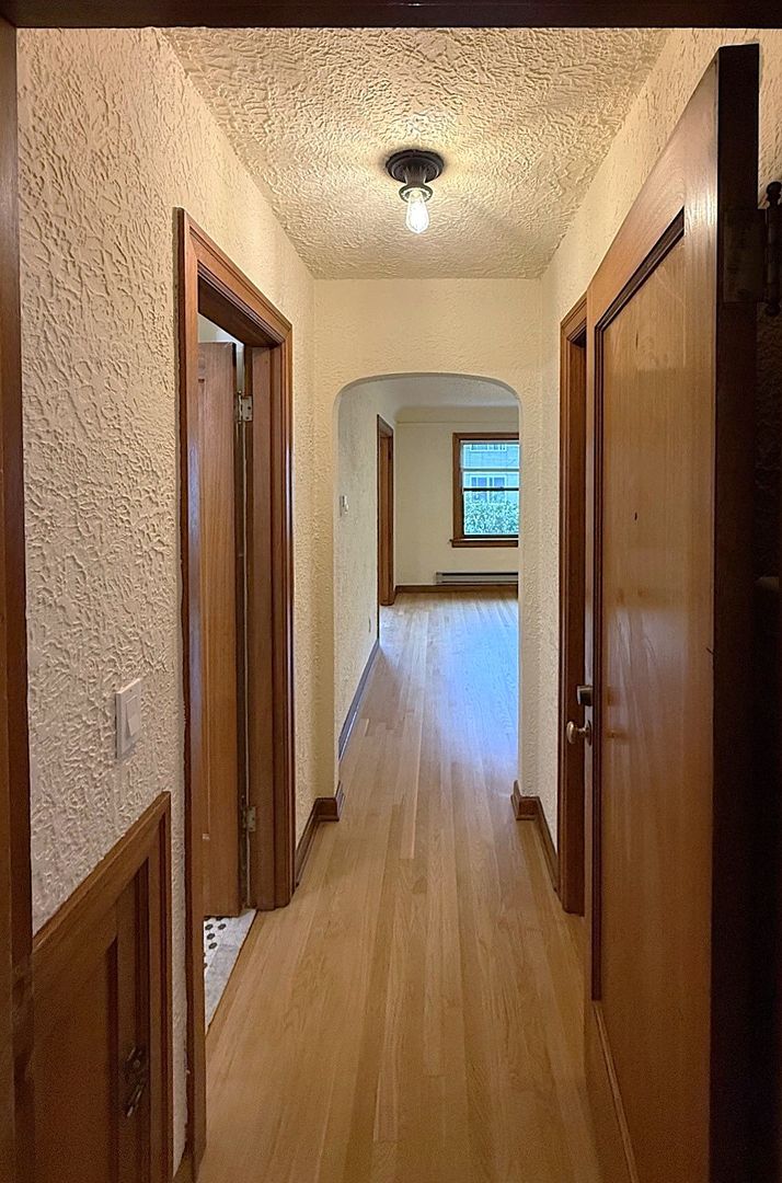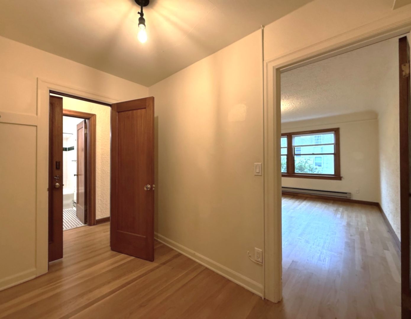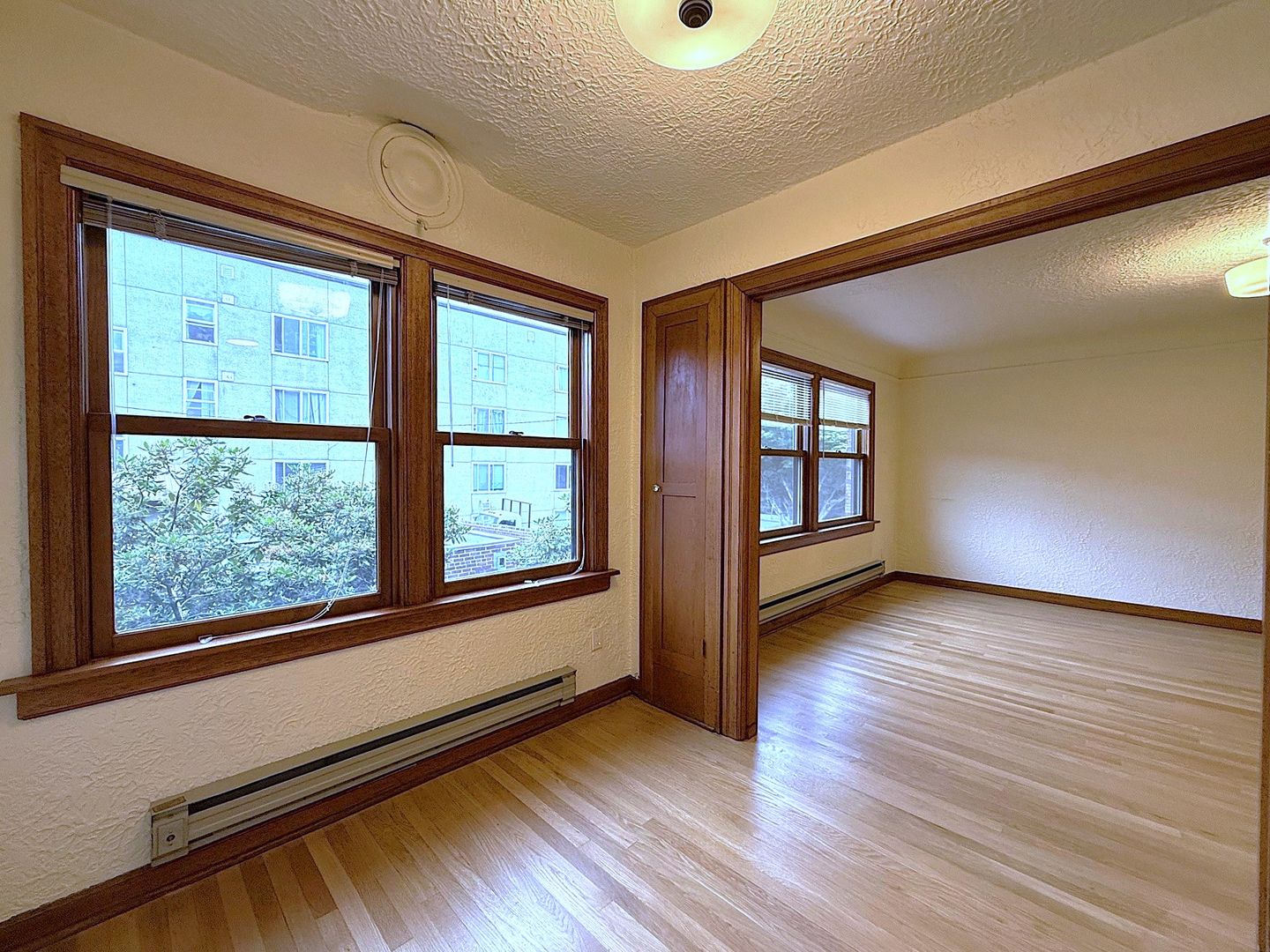 Unit 205 is situated on the North side of the building and receives great natural light. It has refinished natural hardwood floors, an updated kitchen with new cabinets and counters, and a large walk-in closet.