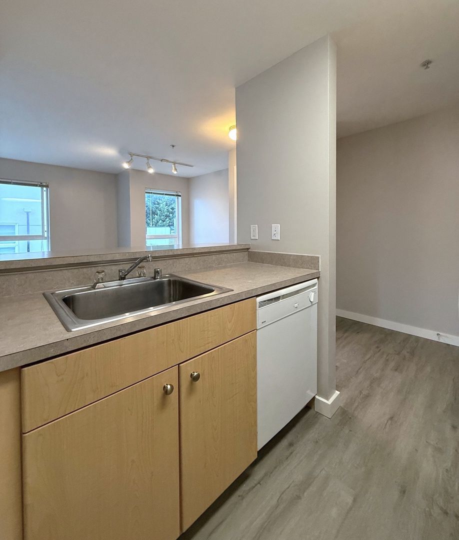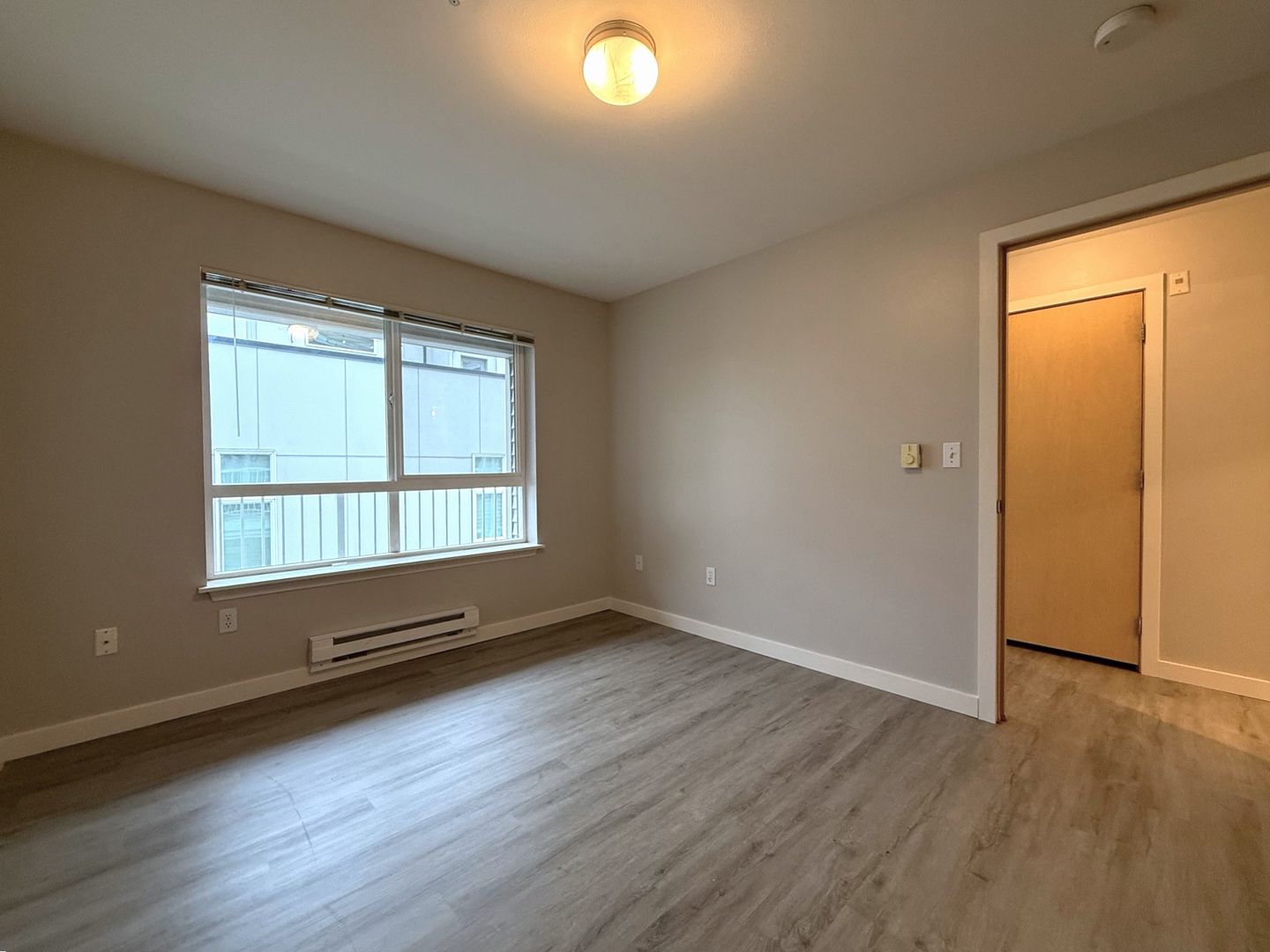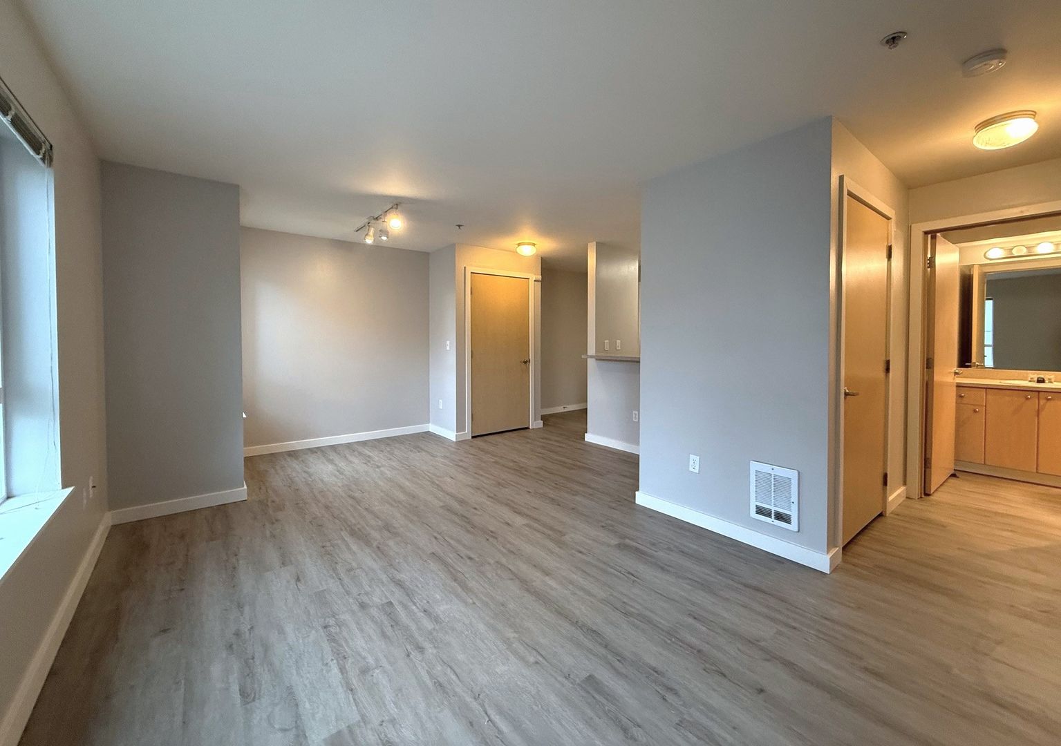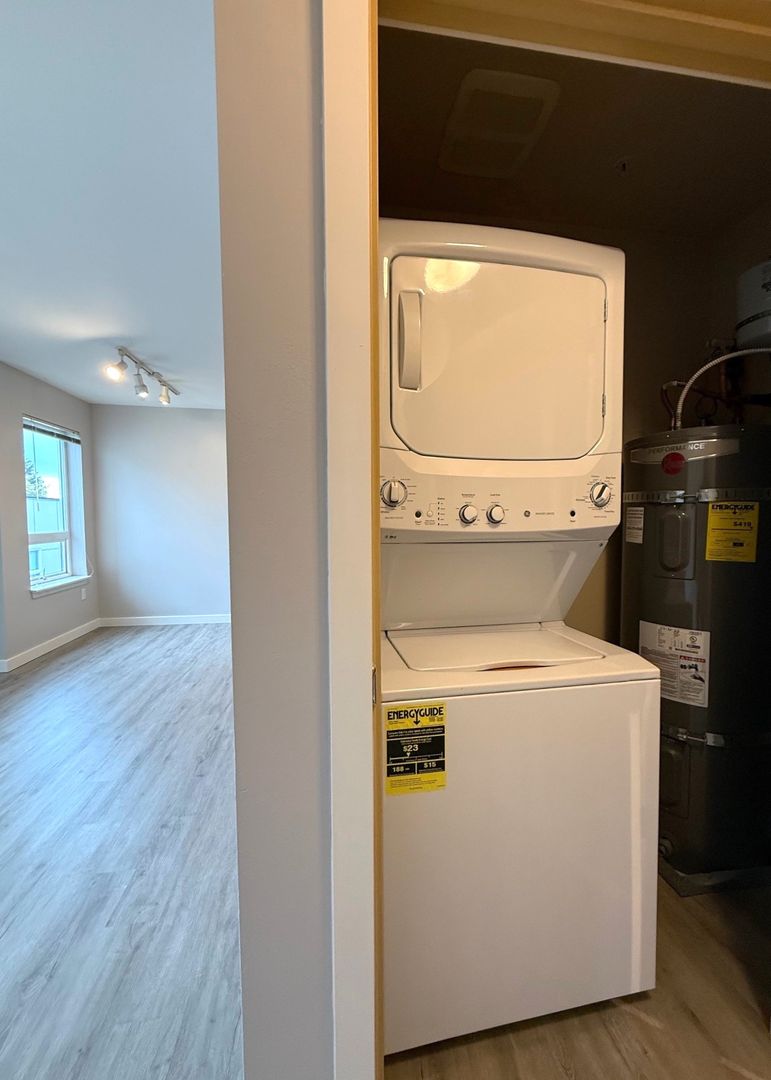 Unit 203 is located on the Northeast corner of the building and receives great natural light. There is a small private balcony off the living room overlooking lower Woodland Park. There is a walk-in closet in the bedroom and an in-unit washer/dryer stack.