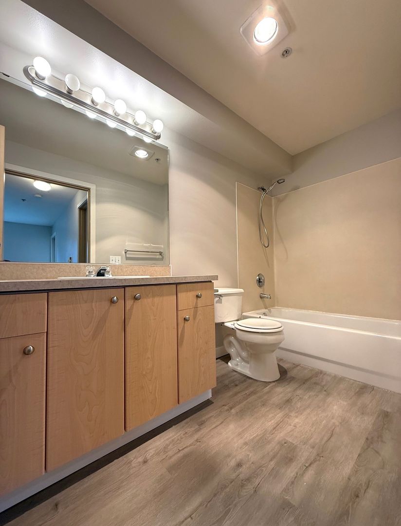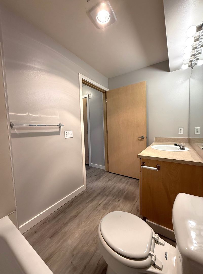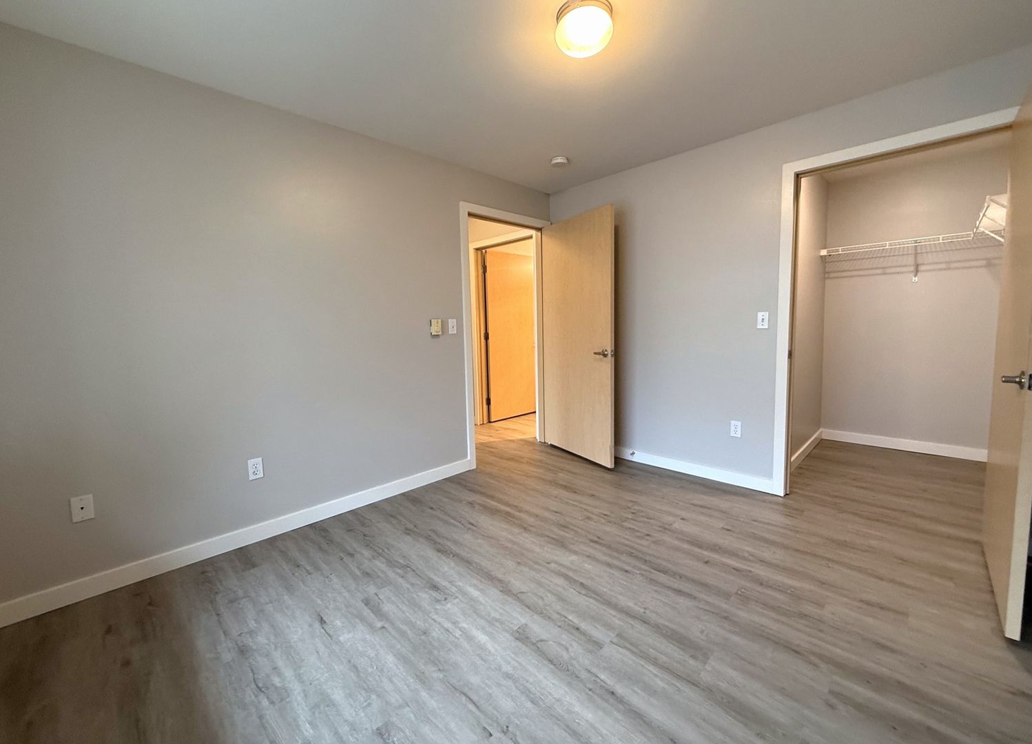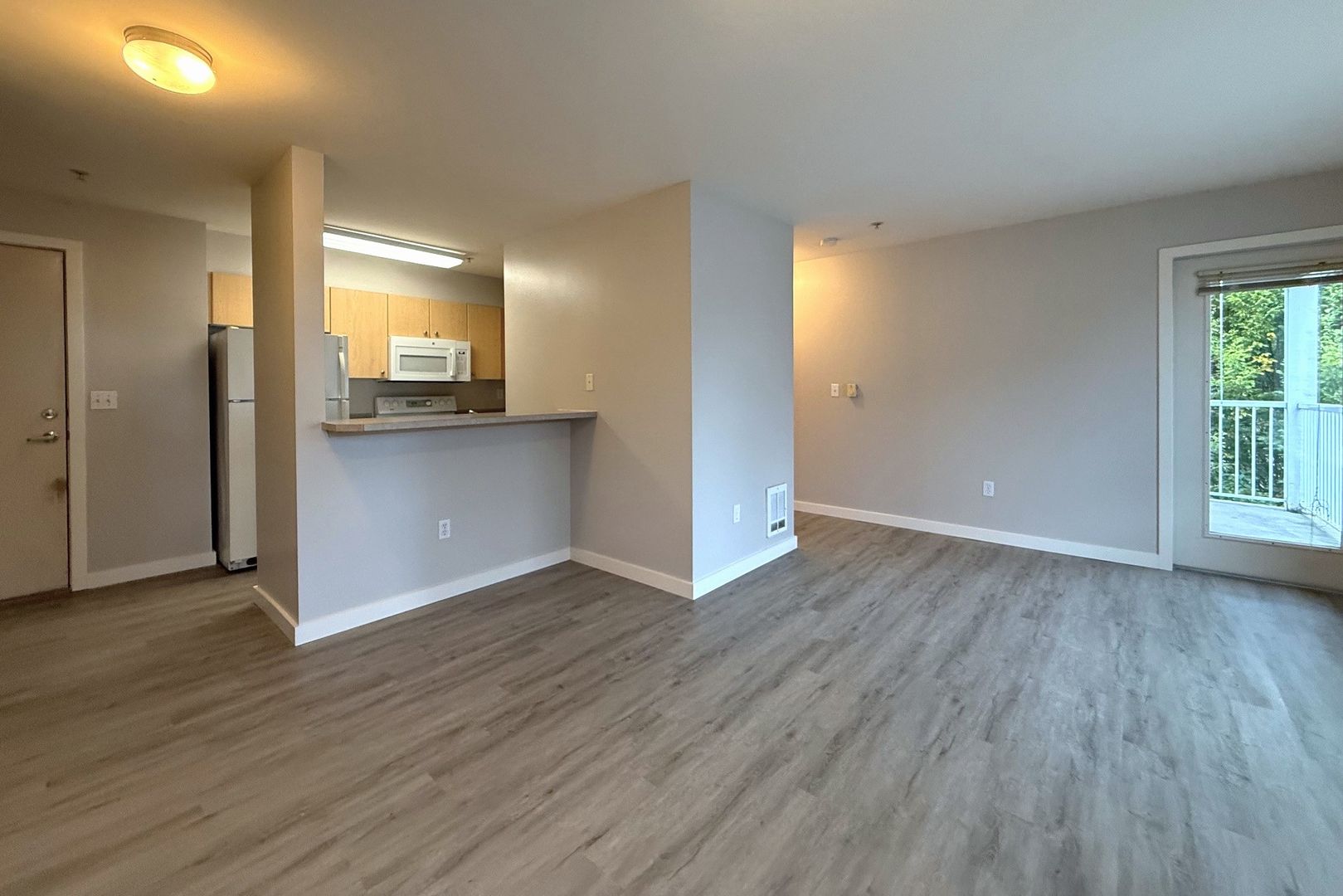 Unit 203 is located on the Northeast corner of the building and receives great natural light. There is a small private balcony off the living room overlooking lower Woodland Park. There is a walk-in closet in the bedroom and an in-unit washer/dryer stack.