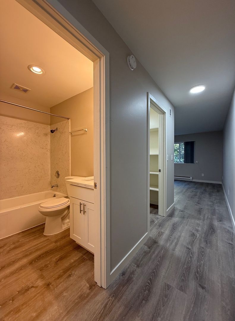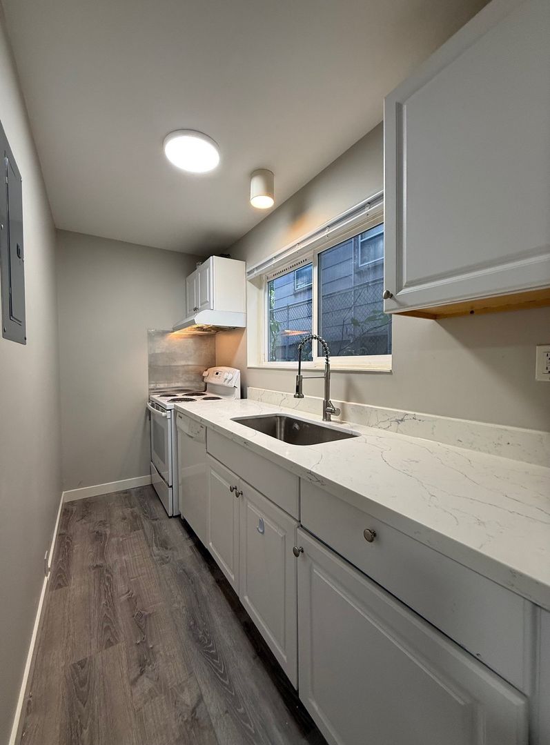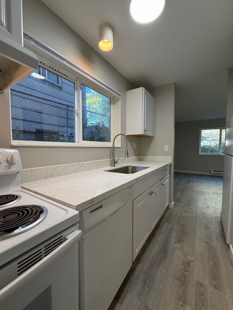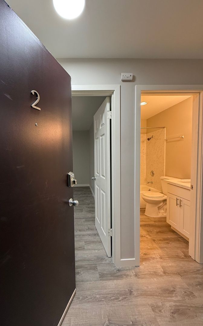 Unit 2 is located in the Northwest corner of the building and receives lovely natural light. This spacious 1bed has new vinyl throughout, new kitchen counters and shower surround, as well as a fresh coat of paint. We are offering this 1 bedroom unit on a 12 month Lease Term with a $75 per month utility fee and 4 weeks free rent.