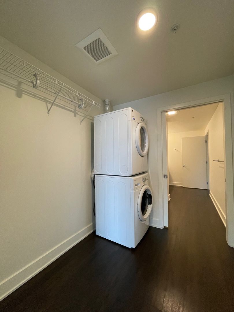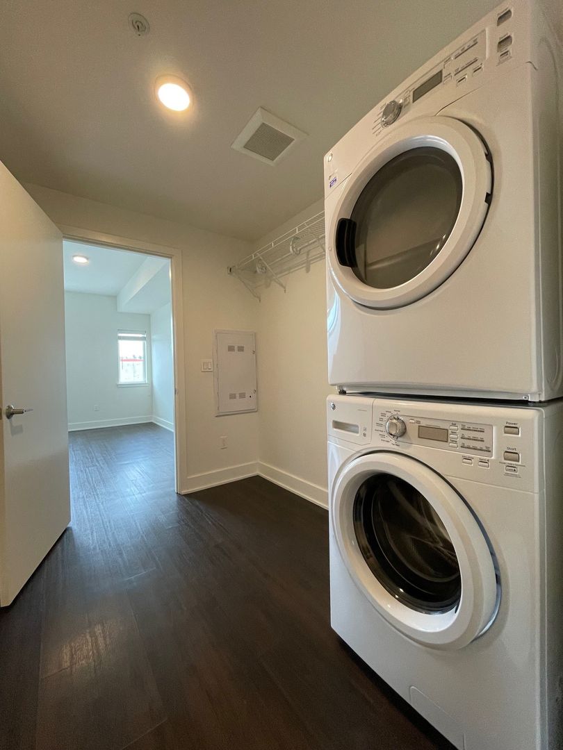 Unit 303 is West facing and receives amazing natural light and views of South Lake Union. There is laminate flooring throughout, stainless steel appliances, a small balcony off the living room, in-unit washer/dryer and plenty of storage.