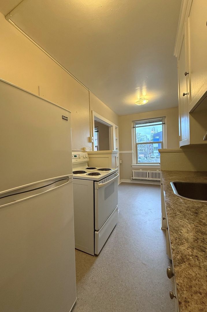 This unit is on the 3rd floor and faces East overlooking 13th Ave. It receives great natural light throughout the day and oozes plenty of charm with much of the original wood work intact.