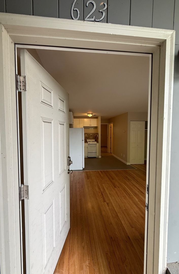 Unit 623 features natural hardwood floors throughout, in-unit washer/dryer and an efficient kitchen. We are offering this 1 bedroom unit with a 12 month Lease Term and a $75 per month utility fee.