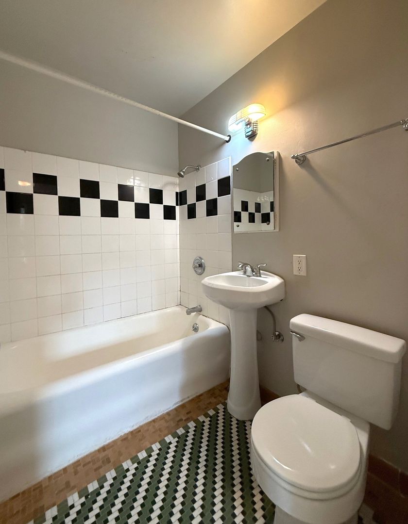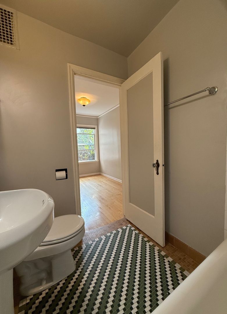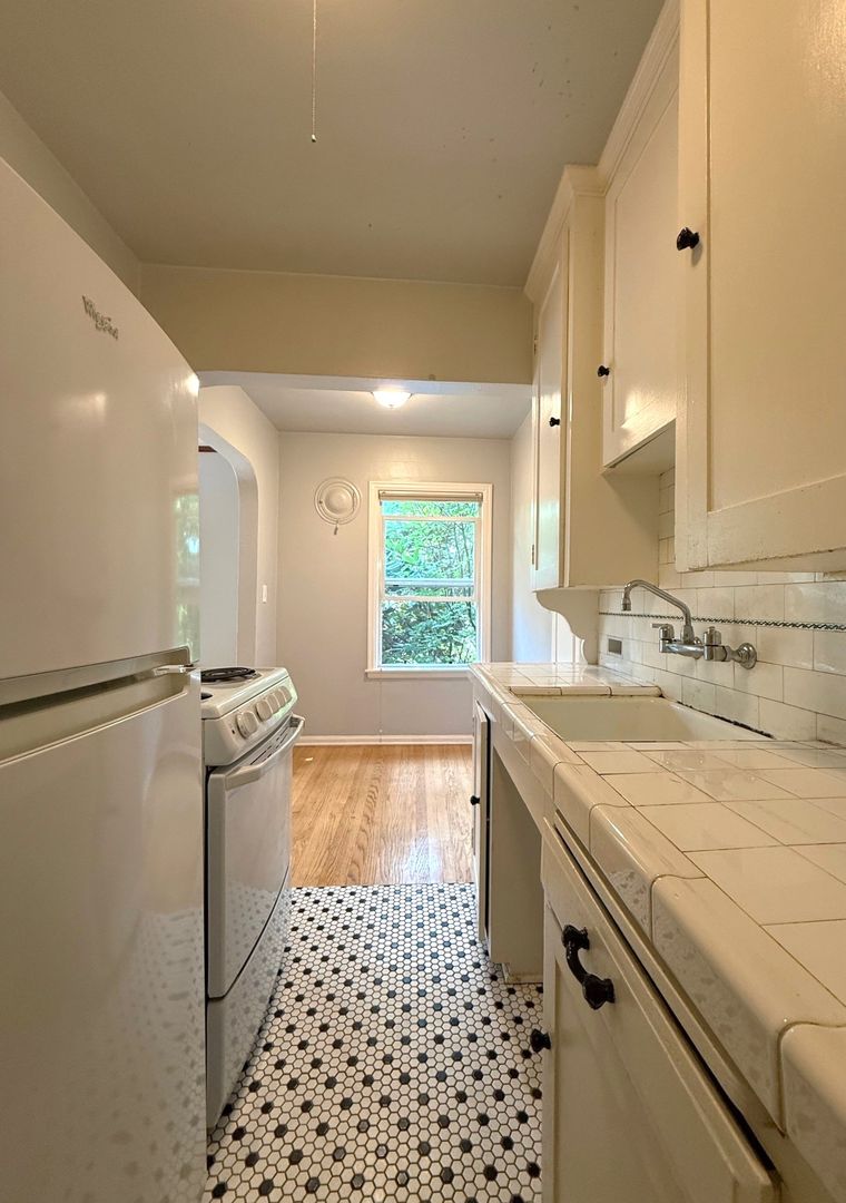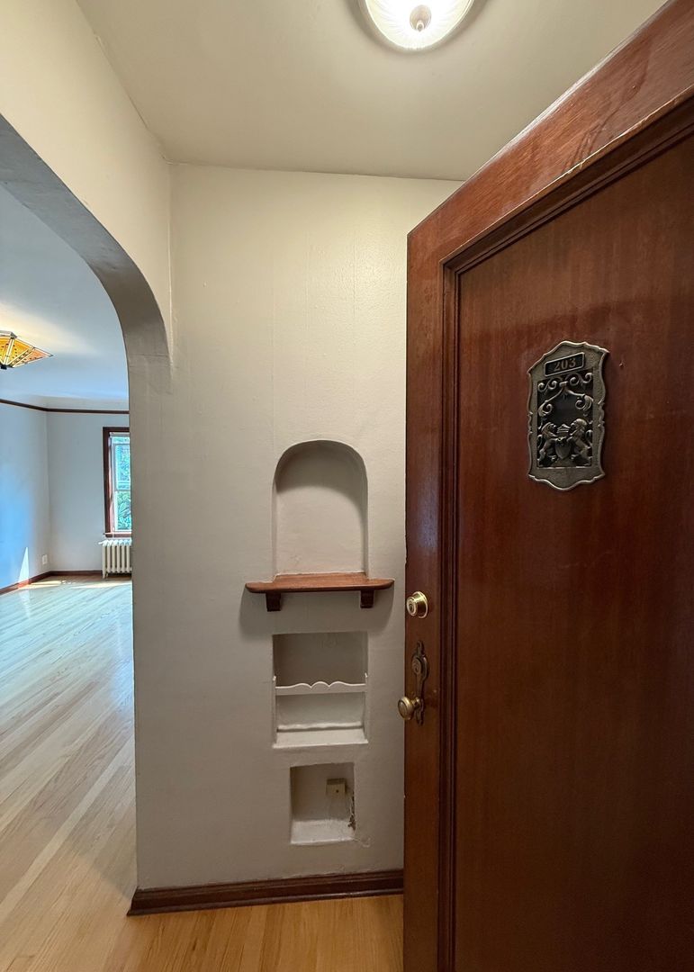 Unit 203 has a view of the courtyard and receives lovely natural light. There are natural hardwood floors throughout and original tile in the kitchen and bathroom. This 1 bedroom apartment is being offered on an 12 month Term Lease with a 4 week rent concession. There is a $75 monthly utility fee for water/sewer/garbage.