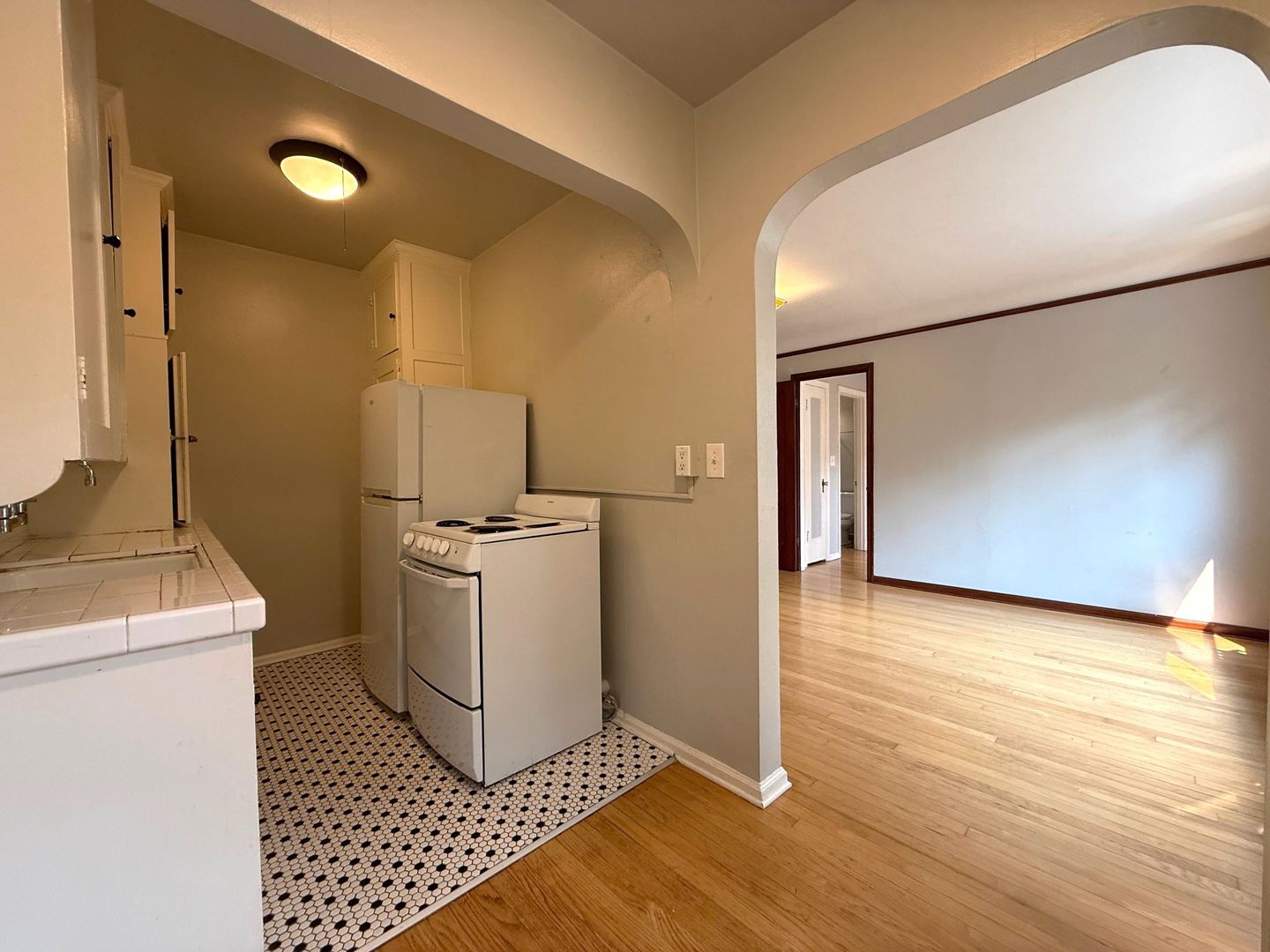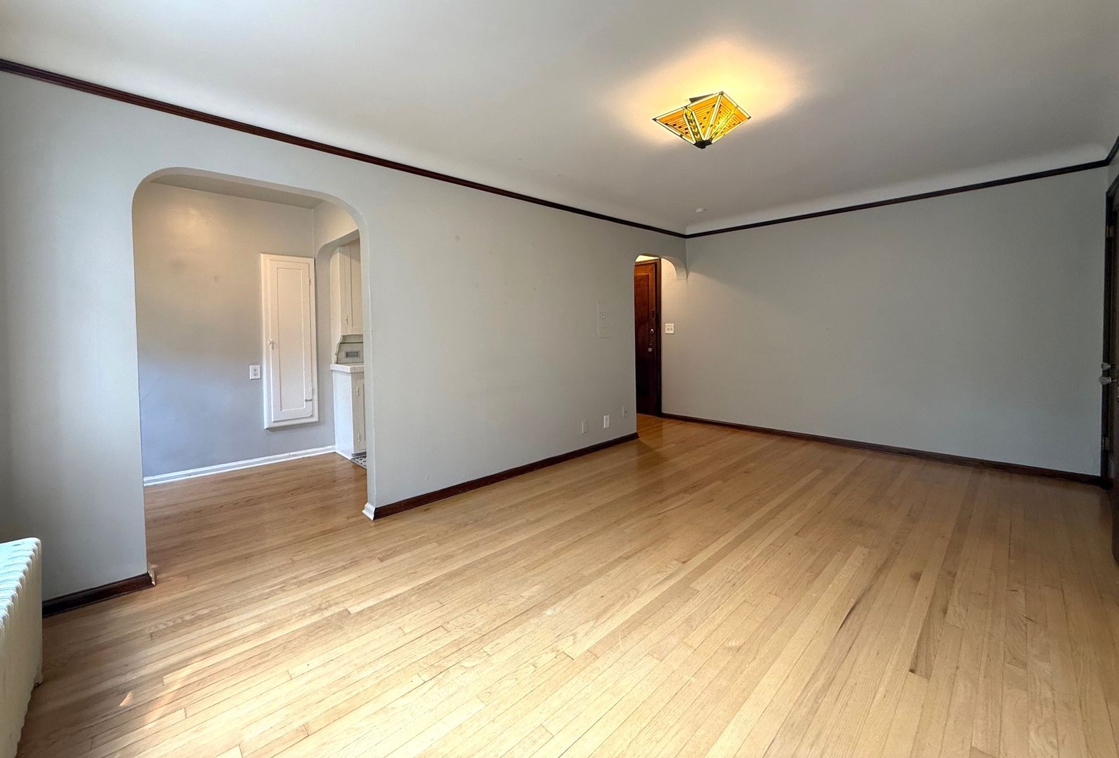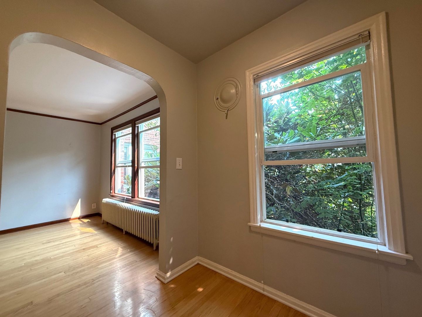 Unit 203 has a view of the courtyard and receives lovely natural light. There are natural hardwood floors throughout and original tile in the kitchen and bathroom. This 1 bedroom apartment is being offered on an 12 month Term Lease with a 4 week rent concession. There is a $75 monthly utility fee for water/sewer/garbage.
