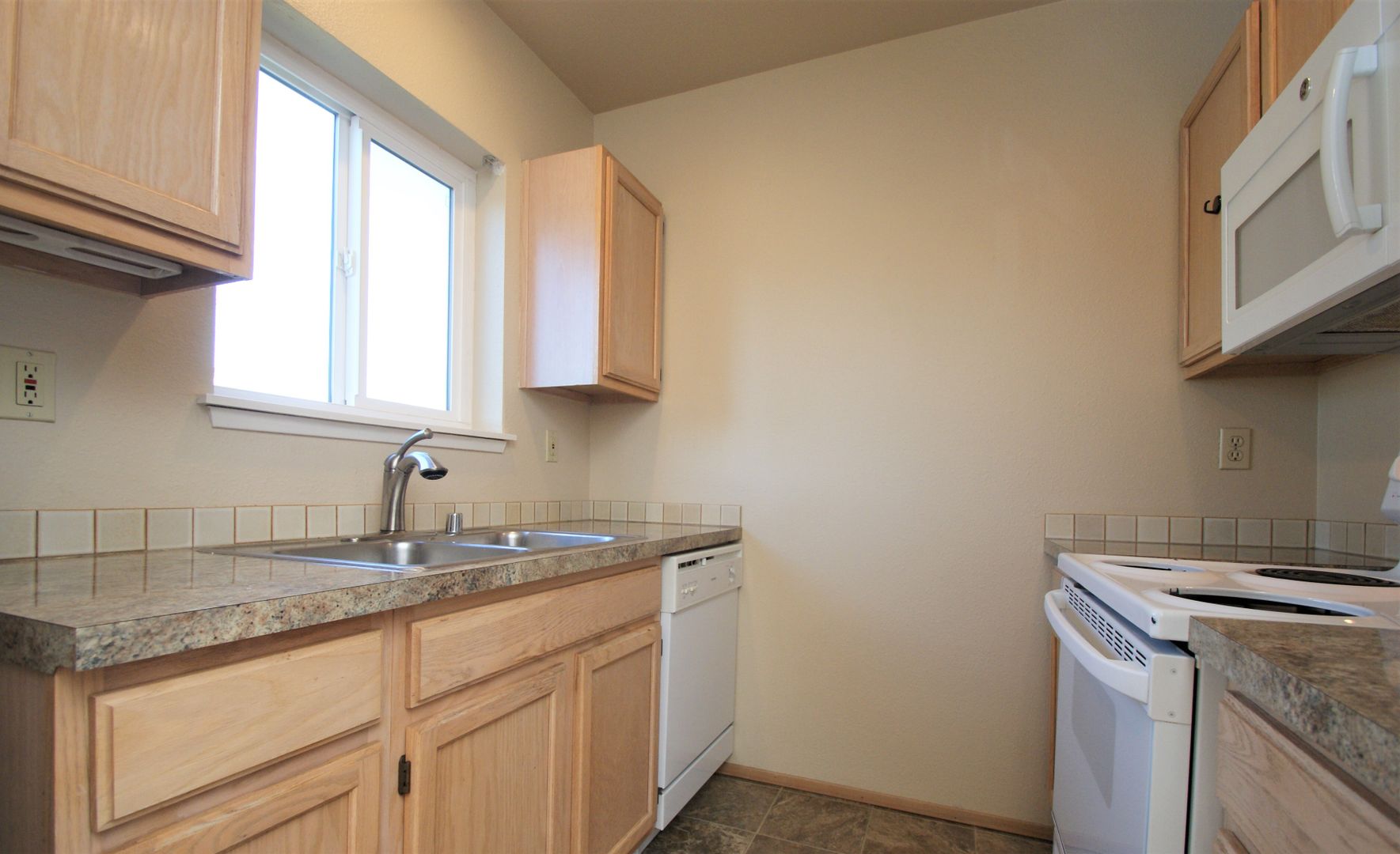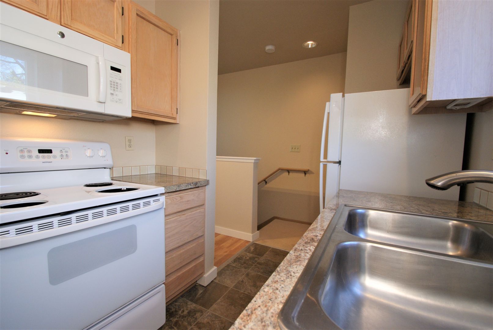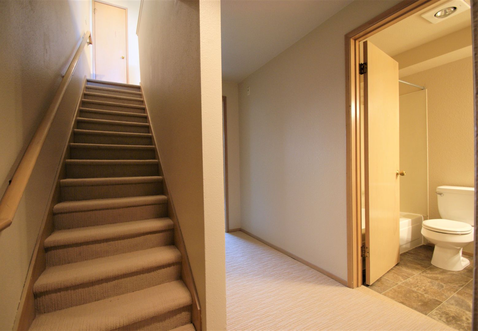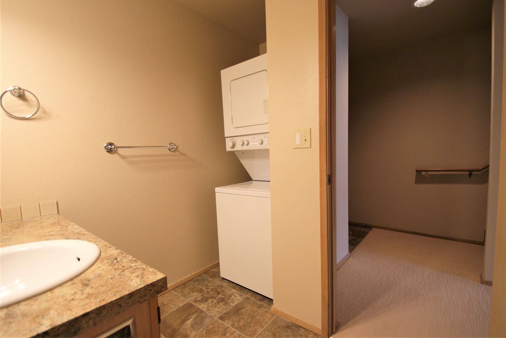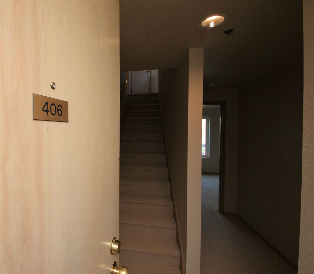 Unit 406 is a top floor townhome-style 1Bedroom that has a private deck off the living room and a washer dryer stack in the bathroom. It has laminate flooring throughout and new carpet in the bedroom. An assigned parking stall could be yours to use for $75/month depending on availability. We are offering this unit on a 12 month Lease Term with a 4 week rent concession.