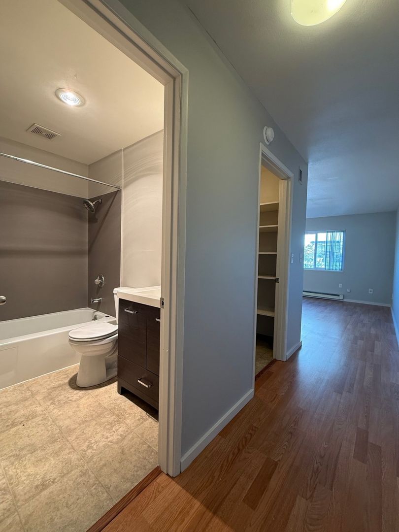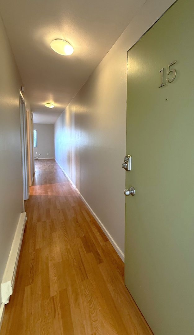 Unit 15 is situated on the NW corner of the building and has laminate flooring throughout. There is an efficient galley kitchen as well as a walk-in closet off the hallway. We are offering this 1 bedroom unit on a 12 month Lease Term with a $75 per month utility fee and a 6 week rent concession.