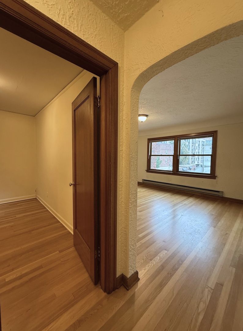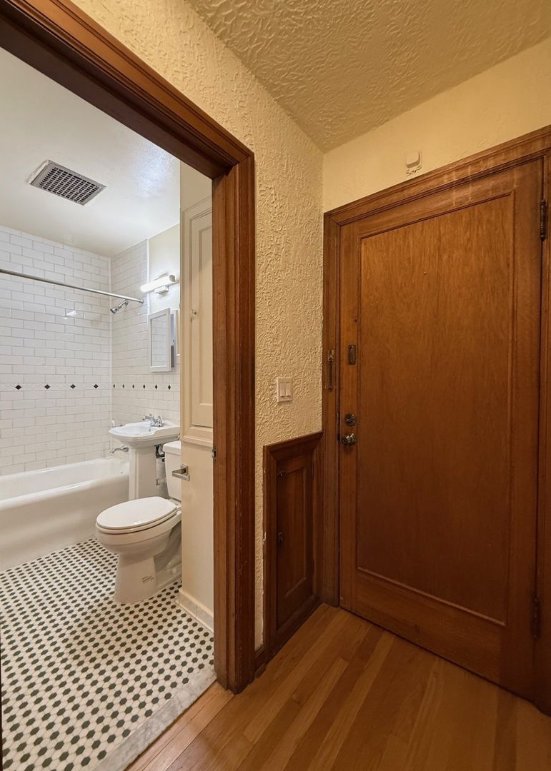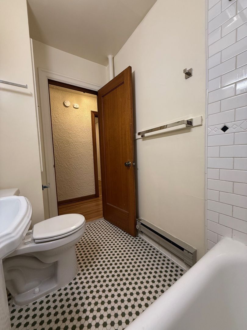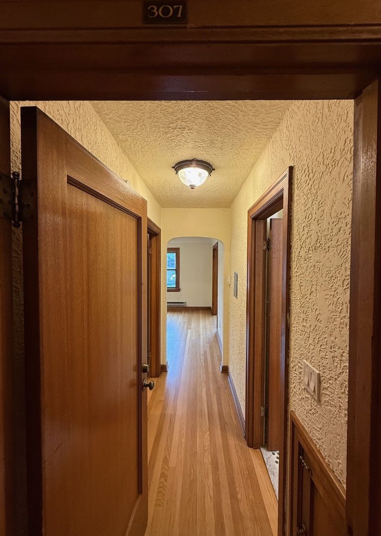 Unit 307 is situated on the Northwest corner of the building and receives great natural light. It has natural hardwood floors throughout, vinyl in the kitchen and original tile in the bathroom. There is a cozy eat-in nook in the kitchen and ample closet space in the bedroom.